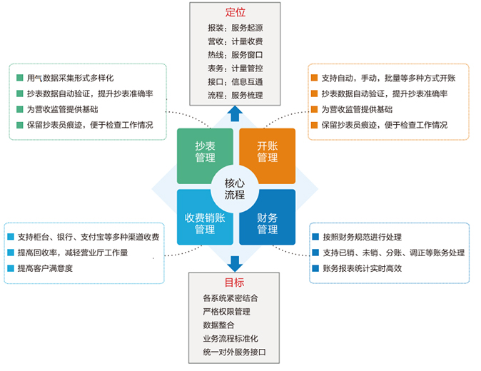 智慧营销全面管理解决方案是以“燃气营业收费管理系统”为核心,对收费管理流程中涉及计量的各类主体进行管理,并对其产生的计量数据信息采用“产生—收集—管理—优化”的理念进行过程控制设计,对用气过程中产生的计量数据实时进行多种分析和汇总...